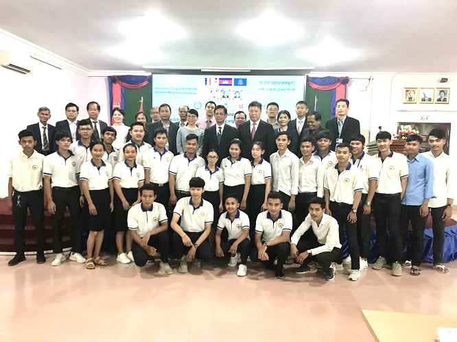 11月4日下午,柬埔寨溫州職業(yè)技術(shù)學(xué)院亞龍絲路學(xué)院第二屆開學(xué)典禮暨中柬語言文化交流中心揭牌儀式在柬埔寨金邊隆重舉行。柬埔寨國家技術(shù)培訓(xùn)學(xué)院校長約克·索提,亞龍智能裝備集團股份有限公司董事長陳繼權(quán),溫州職業(yè)技術(shù)學(xué)院副院長王志梅、國際合作交流處副處長劉長江及赴柬教師代表出席典禮。