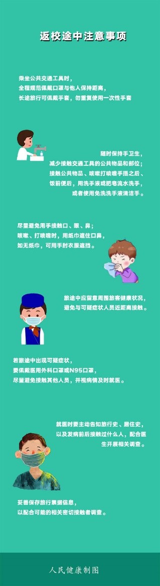近日,多地明確開(kāi)學(xué)日期。在即將返校的途中,學(xué)生如何做好自身防護(hù)、開(kāi)學(xué)期間如何避免交叉感染,這些都是家庭、學(xué)校乃至全社會(huì)關(guān)注的重點(diǎn)。下面,健康小編就向大家介紹一下返校途中以及學(xué)生上課后應(yīng)該注意的事項(xiàng)。