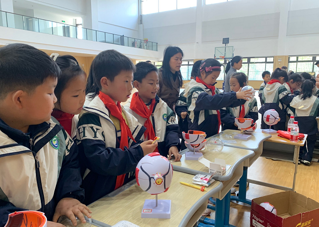 在眼睛結(jié)構(gòu)大比拼區(qū)域,志愿者指導同學們認識眼球結(jié)構(gòu),拆裝拼接大眼睛模型,讓孩子們邊玩邊學,收獲滿滿。