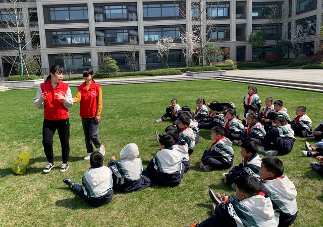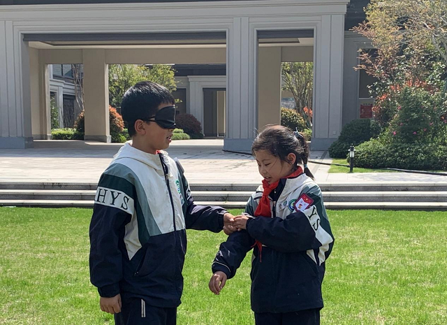 同時,現(xiàn)場還設置了“導盲隨行”體驗環(huán)節(jié),同學們戴上黑色眼罩,兩人一組,開始體驗盲人行走。一個小男孩戴上眼罩后,行走幾乎找不著北,在另一個小女孩的牽引下,終于完成了任務。他說“剛開始根本不知道往哪兒走,后來有人帶著我走,就好多了!蓖ㄟ^親身體驗盲人朋友的不便,充分認識到愛護眼睛健康的重要性。