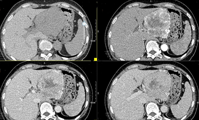 入院后,根據王女士病情,曹利平教授及其團隊為她制定一套詳盡的術前檢查和治療方案。首先,安排做上腹部增強CT,并建議其先穿刺活檢明確病理。