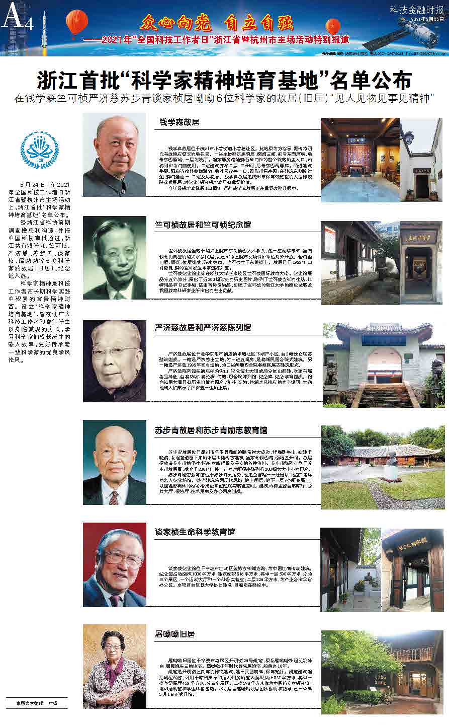 浙江首批“科學(xué)家精神培育基地”名單公布