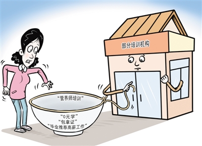 相關(guān)從業(yè)者告訴記者,許多網(wǎng)絡(luò)機構(gòu)宣傳時,刻意塑造“職業(yè)神話”,把“考證”和“高薪”直接掛鉤。但實際上,單靠短期培訓(xùn)的公共營養(yǎng)師,并不能真正勝任現(xiàn)實中復(fù)雜的工作。
