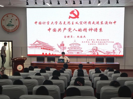 “一百年前,從上海的石庫(kù)門(mén),到嘉興的南湖,十幾個(gè)平均年齡28歲的青年,在一葉小船上醞釀著‘開(kāi)天辟地的大事變’……”近日,在縉云縣東渡中學(xué),來(lái)自中國(guó)計(jì)量大學(xué)青馬宣講團(tuán)的王浩杰深入淺出地為同學(xué)們闡述了中國(guó)共產(chǎn)黨人精神譜系背后的紅色故事。