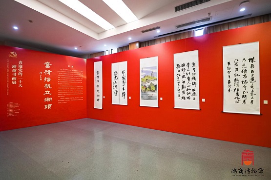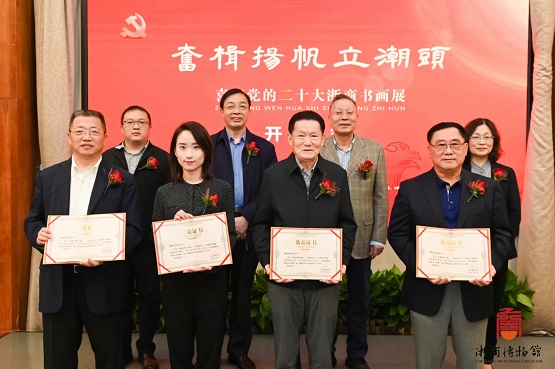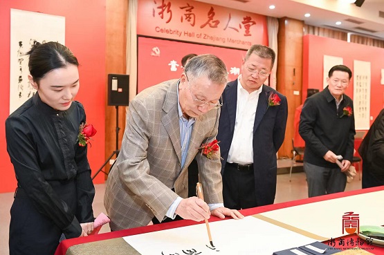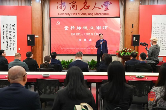 為用更好的精神風(fēng)貌向黨的二十大獻(xiàn)禮,10月13日下午,由浙江省工商聯(lián)、省社科聯(lián)、省僑聯(lián)、浙江工商大學(xué)指導(dǎo),浙商博物館、浙商研究院聯(lián)合主辦的“奮楫揚(yáng)帆立潮頭——喜迎黨的二十大浙商書(shū)畫(huà)展”于浙商博物館開(kāi)幕。浙江省政協(xié)原副主席、黨組副書(shū)記、省慈善聯(lián)合總會(huì)會(huì)長(zhǎng)陳加元,省工商聯(lián)一級(jí)巡視員趙小敏,省僑聯(lián)二級(jí)巡視員陳林,浙江工商大學(xué)黨委委員、宣傳部部長(zhǎng)丁一志,許多相關(guān)單位領(lǐng)導(dǎo)及浙商代表出席開(kāi)幕式。