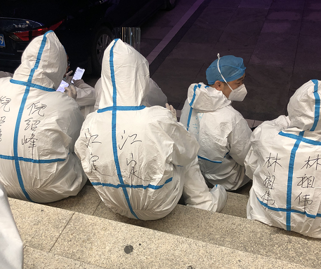 轉(zhuǎn)運(yùn)過程中,有的同志針對(duì)群眾普遍存在的擔(dān)憂焦慮情緒,耐心溝通和暖心安撫,與年長(zhǎng)老人用寧波話親切詢問需求,與河南老鄉(xiāng)用標(biāo)準(zhǔn)普通話詳細(xì)解釋下一步安排和注意事項(xiàng),逐步消解凌晨轉(zhuǎn)運(yùn)過程中的群眾不安情緒。周天威同志協(xié)助老人、抱嬰孩的媽媽、腿腳不便的大姐搬運(yùn)行李,妥善安頓,看到駕駛員夜間行車打呵欠、摘下口罩想抽煙時(shí),及時(shí)提醒行車安全和防疫安全,不時(shí)掐自己大腿防止瞌睡,不斷找話題陪駕駛員聊天,使其保持清醒。因?yàn)榇┲雷o(hù)服上廁所不方便,近20個(gè)小時(shí)不敢吃喝東西,每當(dāng)喉嚨干的難受,就咽幾口口水濕潤(rùn)下喉嚨。林祖?zhèn)ゴ┓雷o(hù)服不吃不喝工作27小時(shí),體力達(dá)到極限,但他仍以頑強(qiáng)毅力支撐下來,到駐地簡(jiǎn)單用餐后一頭累癱在行軍床上。