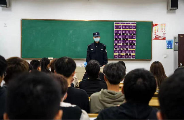 “敲響反詐警鐘,騙術(shù)再高一場空!睘橛行Х乐剐滦碗娦旁p騙對大學(xué)生的傷害,讓同學(xué)們更直觀體會詐騙的危害,金融系黨總支邀請了金華市多湖派出所村警祝警官到22級新生班級作防詐騙宣講。祝警官用通俗易懂的語言為同學(xué)們普及率常見的詐騙套路和手段,列舉了幾種常見的騙術(shù),并提醒同學(xué)們慎思明辨,擦亮雙眼,提高警惕心,不要因小失大。