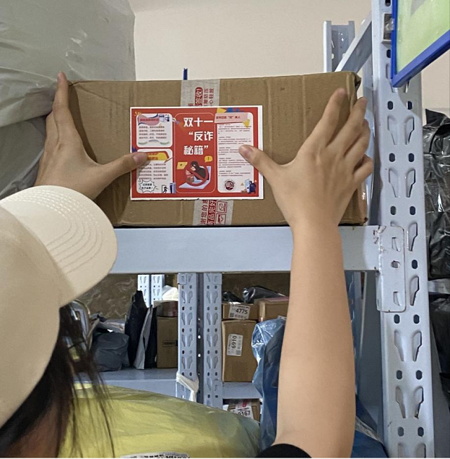 “時刻繃緊防范之弦,嚴防電信網(wǎng)絡(luò)詐騙!睘樘岣呶倚W(xué)生的網(wǎng)購安全意識,金融系黨總支動員同學(xué)們前往校園快遞站進行雙十一“反詐秘籍”貼紙的全覆蓋張貼。同時,系官方公眾號定期制作反詐主題推送。黨總支還組織全體同學(xué)下載注冊“國家反詐中心”APP、簽署金融系“全民反詐”承諾書、觀看官方反詐宣傳片,切實增強了同學(xué)們對電信網(wǎng)絡(luò)詐騙的理解與認識。