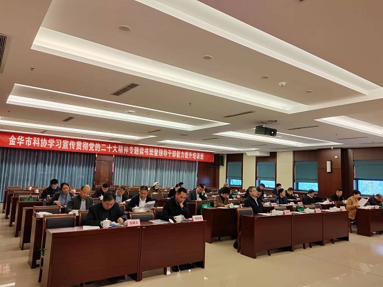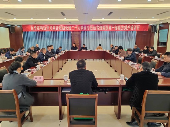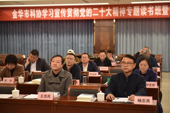 浙江省科協(xié)副廳長級領導王忠民、金華市委黨校副教授張文才分別作理論宣講和專題輔導。金華市科協(xié)黨組成員、副主席楊志良主持會議。金華市科協(xié)、各縣(市、區(qū))科協(xié)班子成員、科協(xié)機關全體人員參加培訓。