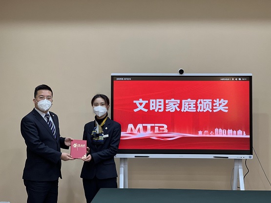 為積極培育選樹在家庭家教家風上的基層先進典型,積極參與紹興市文明單位創(chuàng)建,日前,民泰銀行紹興分行舉辦首屆文明家庭評選,共收到7個家庭評選資料,新昌支行員工單雨脫穎而出,摘得“文明家庭”稱號。