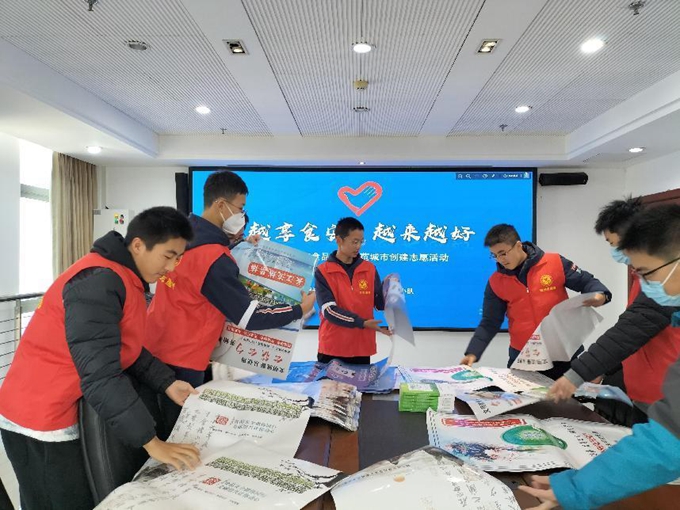 圖為:紹興一中高一(4)班的學(xué)生志愿者在整理宣傳海報