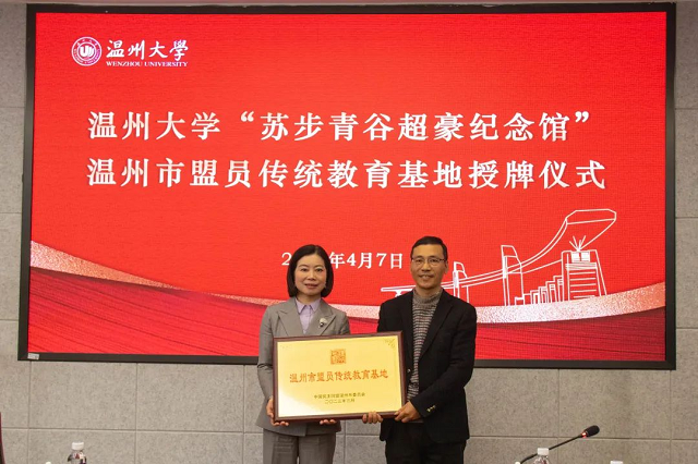 為大力弘揚(yáng)科學(xué)家精神,加強(qiáng)民盟盟員思想建設(shè),近日,民盟溫州市委會(huì)與溫州大學(xué)舉行盟員傳統(tǒng)教育基地授牌儀式,將溫州大學(xué)蘇步青谷超豪紀(jì)念館定為溫州市盟員傳統(tǒng)教育基地。授牌儀式在溫州大學(xué)巖松堂舉行,民盟溫州市委會(huì)專職副主委王黎然授牌,溫大數(shù)理學(xué)院黨委書記陳興桂代表蘇步青谷超豪紀(jì)念館接牌。