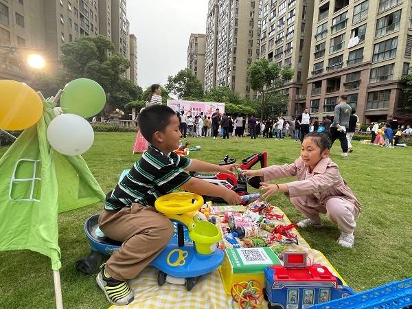社區(qū)搭臺(tái),鄰里結(jié)緣!鄰里同樂是本次活動(dòng)的最大特色,微風(fēng)徐徐,在尚東名邸小區(qū)里傳來陣陣吆喝聲、歡笑聲,孩子們?cè)诩议L的指導(dǎo)下正賣力地推薦自己的物品。這是一場由長纖塘社區(qū)為轄區(qū)小朋友特別推出的“鄰里市集·販賣快樂”擺攤活動(dòng),來自轄區(qū)10余組親子家庭作為攤位檔主,孩子們和爸爸媽媽一起早早地來到活動(dòng)現(xiàn)場,將家里閑置的書本、玩具,自制的手工藝品、甜品點(diǎn)心等,整齊、有序地?cái)[放在地墊上,每一個(gè)攤點(diǎn)的商品都琳瑯滿目,讓人看得眼花繚亂。孩子們?cè)诩议L的指導(dǎo)下正賣力地推薦自己的物品,居民可以采取低價(jià)銷售和以物換物的方式,讓玩具、書籍等閑置物品得到最大化利用。精彩有趣的活動(dòng)為小區(qū)增添了“人間煙火氣”,也踐行了“浙風(fēng)十禮”,弘揚(yáng)了文明新風(fēng),小小攤主們?cè)诮煌?dòng)中收獲了友誼和快樂。
