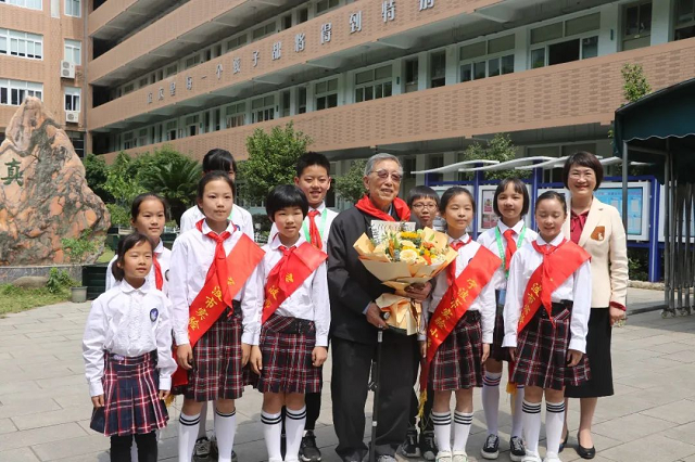 第一次親眼領(lǐng)略院士的風(fēng)采,實(shí)小學(xué)子們十分激動(dòng),紛紛拉住院士爺爺?shù)氖郑胍M(jìn)行采訪。胡思得精神矍鑠,一一點(diǎn)頭答應(yīng)!昂鸂敔,您從小的理想是什么?”“胡爺爺,您小學(xué)時(shí)的成績好不好呀?”“您最想感謝的人是誰?”……胡思得侃侃而談,回憶起自己小學(xué)時(shí)的調(diào)皮時(shí)光,感嘆孩子們現(xiàn)在的學(xué)習(xí)條件非常好,學(xué)校又特別重視科學(xué)創(chuàng)新精神的培養(yǎng),他鼓勵(lì)同學(xué)們要寫好字,學(xué)好知識(shí),從小樹立報(bào)效祖國的理想,為祖國貢獻(xiàn)自己的力量。