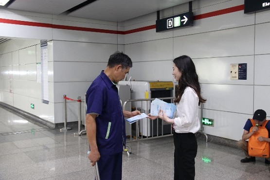 有效利用區(qū)位便利,提高線下受眾覆蓋面。6月15日集中宣傳日當(dāng)天,稠州金租組織員工前往CBD附近寫字樓宇、地鐵口、公交車站、便利店等人流量較大區(qū)域發(fā)放2023年普及金融知識萬里行宣傳折頁,并對來往人員詳細闡述非法集資的危害性。同時,在集團辦公大樓一樓大廳電子門楣顯示屏24小時滾動播放宣傳標(biāo)語,擺放金融知識宣傳折頁、展架等相關(guān)宣教資料,讓來往客戶和員工了解金融知識,提高警惕,增強保護“錢袋子”的安全意識。