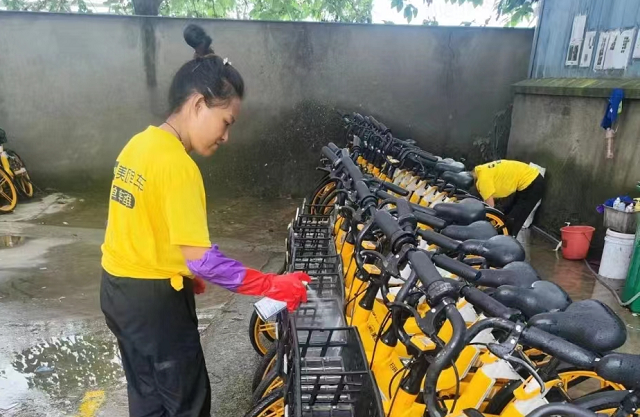 美團(tuán)單車資產(chǎn)管理杭州負(fù)責(zé)人袁偉樂介紹,為了迎接亞運(yùn)會,美團(tuán)于7月初啟動了“車輛清洗”專項(xiàng)行動,目前已持續(xù)清洗了一萬余輛次共享單車,平均每天清洗600輛次。隨著綠色出行融入市民日常生活,共享單車成為了小廣告灰黑產(chǎn)的“宿主”。為有效治理單車小廣告,美團(tuán)單車開展“小廣告”清理專項(xiàng)行動,運(yùn)維人員隨身攜帶工具及時(shí)清理車身小廣告,每天清理小廣告8000余輛。對于在街頭無法完成簡易清潔維護(hù)的單車,比如頑固的車身小廣告,美團(tuán)單車會將車輛統(tǒng)一規(guī)整回倉庫,進(jìn)行深度清潔維護(hù)。