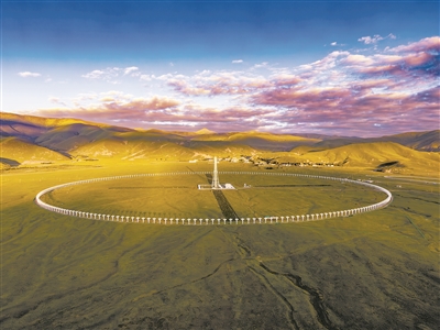 它的名字叫作圓環(huán)陣太陽射電成像望遠鏡(以下簡稱“圓環(huán)陣”),位于海拔3820米的四川省甘孜州稻城縣,是目前全球規(guī)模最大的綜合孔徑射電望遠鏡,也是國家重大科技基礎(chǔ)設(shè)施“空間環(huán)境地基綜合監(jiān)測網(wǎng)”(子午工程二期)的標志性設(shè)備之一。