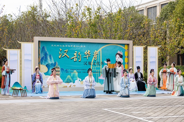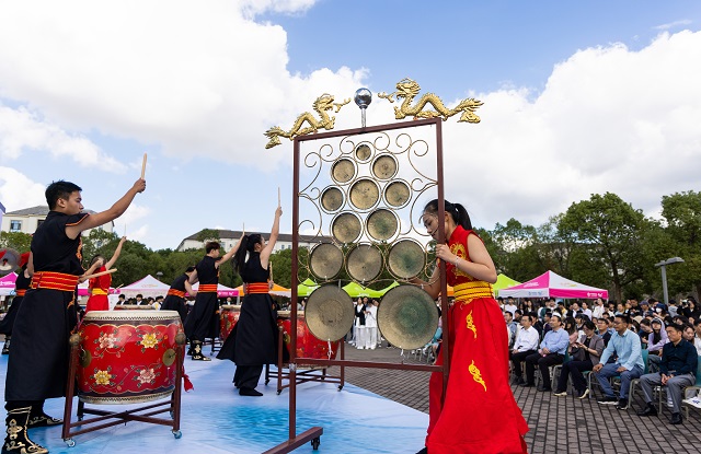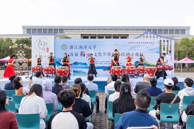 10月21日上午,浙江海洋大學(xué)新城校區(qū)秋陽高照,人群熙攘。在國家級非遺項目舟山鑼鼓氣勢磅礴的演奏聲中,以“古韻今輝,禮敬中華”為主題的首屆國風(fēng)文化節(jié)活動正式拉開帷幕。