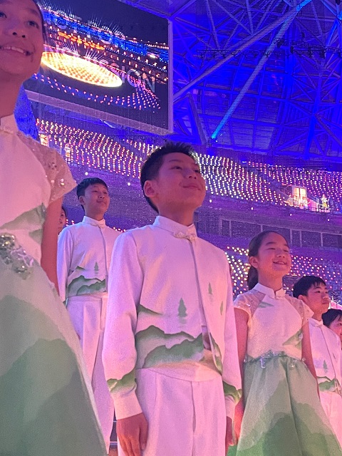 五月初,經(jīng)過層層刪選,我和18位濱實小伙伴幸運的成為了亞殘開幕式合唱團的成員。開始我覺得上場就這么三五分鐘,有什么難的,但進入真正的排演后,才發(fā)覺,這任務(wù)真的是光榮且又艱巨。