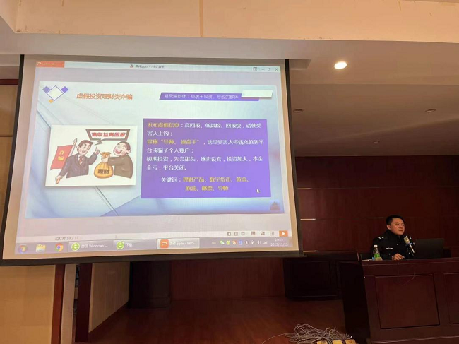 蕭山公安局反欺詐專家王佳南警官?gòu)氖裁词请娦旁p騙、電信詐騙的常見(jiàn)形式、如何識(shí)別防范電信詐騙、如何提升防范能力等方面為企業(yè)員工生動(dòng)形象地上了一堂反詐課堂。為切實(shí)維護(hù)群眾財(cái)產(chǎn)安全,“捂緊”自己的口袋,王警官用貼切生活實(shí)際的案例來(lái)給大家舉例,向群眾宣傳常見(jiàn)的詐騙預(yù)防方法,告知大家“刷單”、“殺豬盤”、“虛假投資”、“征信異議”等常見(jiàn)的詐騙手段。他介紹,這些手段通常的特征有高回報(bào)、低風(fēng)險(xiǎn)、回報(bào)快,極易誘使受害人上鉤。王警官告誡大家要提高警惕,要牢記十個(gè)凡是,六個(gè)一律,杜絕電信網(wǎng)絡(luò)詐騙發(fā)生。同時(shí),他呼吁大家牢記反詐中心電話“96110”,并下載“國(guó)家反詐中心”APP。
