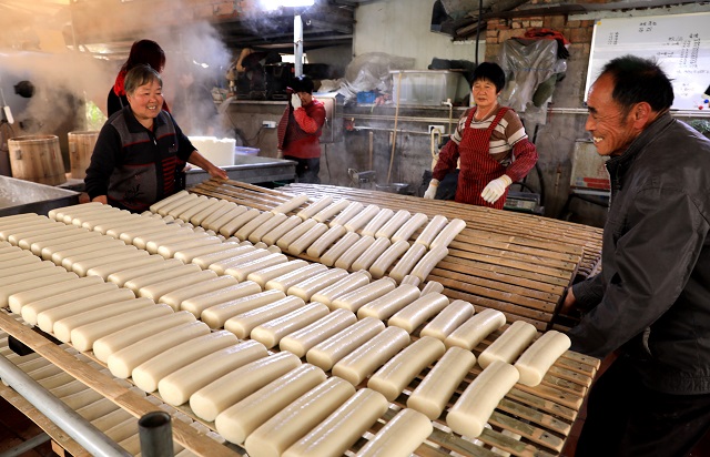 1月5日,在浙江省溫嶺市新河鎮(zhèn)肖家橋村,當(dāng)?shù)匕傩照谮s制熱氣騰騰的年糕,以喜迎新年的到來。溫嶺素有新年打年糕的習(xí)俗。年糕,寓意年年高,承載著百姓心中濃濃的鄉(xiāng)愁。(林紹禹 周學(xué)軍)