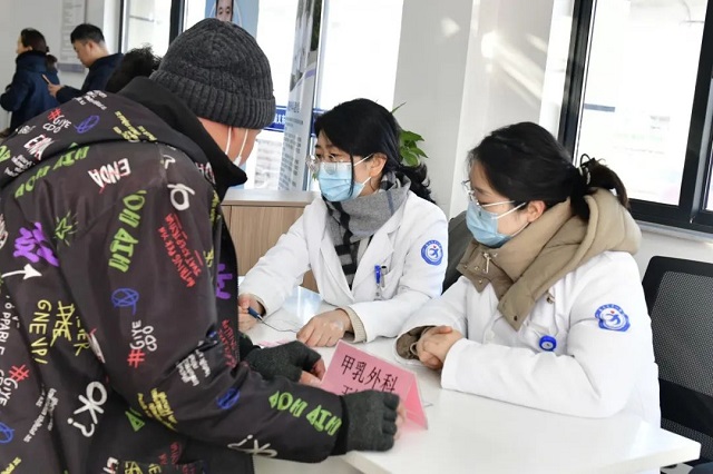 在義診宣教現(xiàn)場,神經(jīng)內(nèi)科、骨科、心血管內(nèi)科、內(nèi)分泌科、呼吸內(nèi)科等10余個科室專家“一對一”現(xiàn)場問診,為三個園區(qū)網(wǎng)格、檔口經(jīng)營戶、叉車工、裝卸工、貨車司機、園區(qū)物業(yè)人員和保安等一線工作者提供專業(yè)診療建議和科學(xué)健康指導(dǎo)。