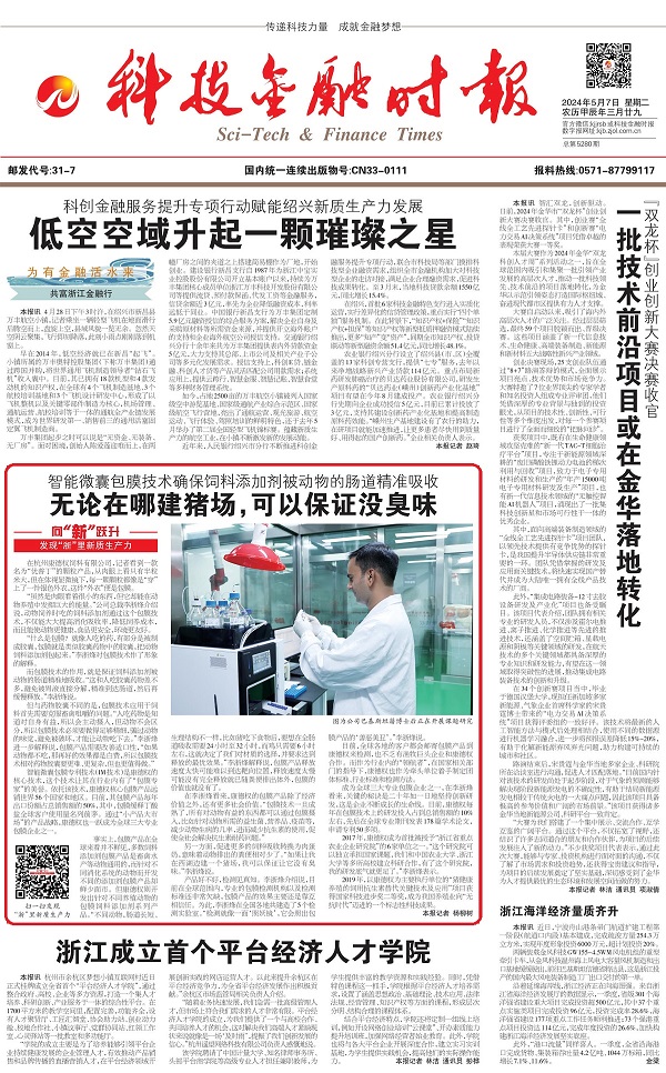 編者按》》》眼下,浙江正全力以赴“在以科技創(chuàng)新塑造發(fā)展新優(yōu)勢(shì)上走在前列”,科技金融時(shí)報(bào)全媒體推出“向‘新’躍升——發(fā)現(xiàn)‘浙’里新質(zhì)生產(chǎn)力”系列報(bào)道,深度挖掘一批在發(fā)展新質(zhì)生產(chǎn)力上敢打頭陣、勇當(dāng)先鋒、爭(zhēng)當(dāng)尖兵的典型。