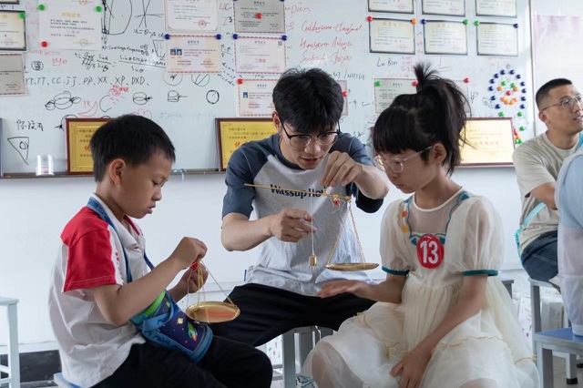 來(lái)自杭州市錢塘區(qū)學(xué)正小學(xué)的丁老師也參與了活動(dòng),她欣喜地表示,“科普內(nèi)容接地氣,與小學(xué)科學(xué)課的教學(xué)內(nèi)容契合度很高,比如空氣質(zhì)量、杠桿原理、聲音傳播等都有涉及,又有拓展延伸!蔽迥昙(jí)的楊振斌對(duì)空氣質(zhì)量的測(cè)量非常感興趣,“我們?cè)诳茖W(xué)課本里學(xué)過(guò),空氣是有質(zhì)量的,但是空氣有多重,還不是很清楚,老師們用現(xiàn)代的測(cè)量手段,幫我們測(cè)量了一瓶空氣的質(zhì)量,讓我更加直觀地感受到了空氣的存在!