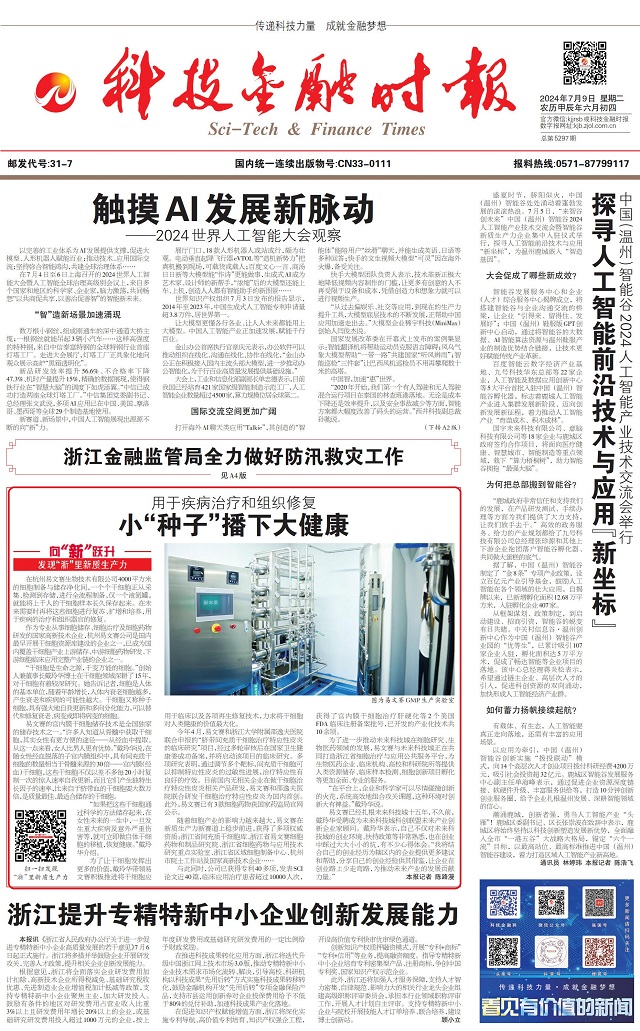編者按》》》眼下,浙江正全力以赴“在以科技創(chuàng)新塑造發(fā)展新優(yōu)勢(shì)上走在前列”,科技金融時(shí)報(bào)全媒體推出“向‘新’躍升——發(fā)現(xiàn)‘浙’里新質(zhì)生產(chǎn)力”系列報(bào)道,深度挖掘一批在發(fā)展新質(zhì)生產(chǎn)力上敢打頭陣、勇當(dāng)先鋒、爭(zhēng)當(dāng)尖兵的典型。