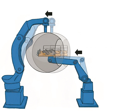 為了破解動物在完全黑暗的管道、隧道中也能迅速轉(zhuǎn)彎、穿越障礙,并準(zhǔn)確地抵達(dá)目的地的秘密,科學(xué)家們設(shè)計了一種獨(dú)特的運(yùn)動模擬器。該模擬器采用同步的工業(yè)機(jī)械臂來模擬不同的運(yùn)動狀態(tài)。實(shí)驗中,老鼠被放在模擬器中接受各種運(yùn)動刺激,儀器同時報告它們感知到的運(yùn)動方向。結(jié)果顯示,老鼠對極其微小的氣流變化都異常敏感,它們確實(shí)能夠利用這種氣流信息,增強(qiáng)自身對運(yùn)動的感知和判斷力。