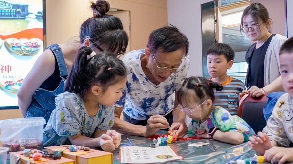南湖菱不僅可以端上餐桌,還可以被擺上畫案。在南湖菱畫非遺傳承人的教學(xué)和指導(dǎo)下,學(xué)生們與家長通力合作,勾線填色,兔子、老虎、小鳥……借菱而生。