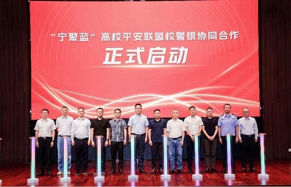 活動(dòng)現(xiàn)場(chǎng)舉行了“寧聚藍(lán)”高校平安聯(lián)盟校警銀協(xié)同合作啟動(dòng)儀式。今后將繼續(xù)守護(hù)平安校園,創(chuàng)造和諧安全的金融消費(fèi)環(huán)境。