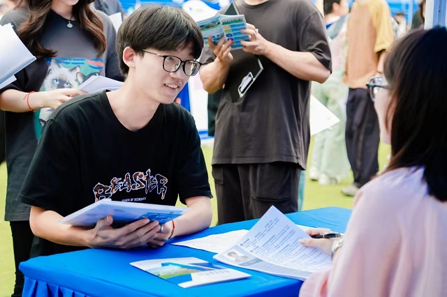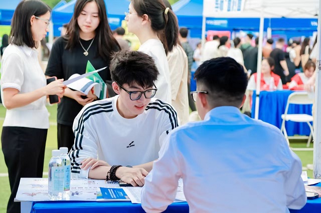 在生涯“規(guī)劃站”,學校安排校內外專家來到招聘會現(xiàn)場,解答同學們有關求職擇業(yè)、國內外升學、考公考編、自主創(chuàng)業(yè)、征兵入伍等生涯規(guī)劃疑問,現(xiàn)場還為學生提供法律援助等服務。“在求職過程中,我發(fā)現(xiàn)用人單位關注的不僅僅是我的專業(yè)知識儲備,更多的還會關注到在學校期間的科技競賽、實習實踐等經歷,所以在大學期間充分探索和提升自我綜合素質很重要。”信息工程學院通信工程專業(yè)2025屆本科生劉晟向校外專家咨詢了求職經驗后感受頗深。