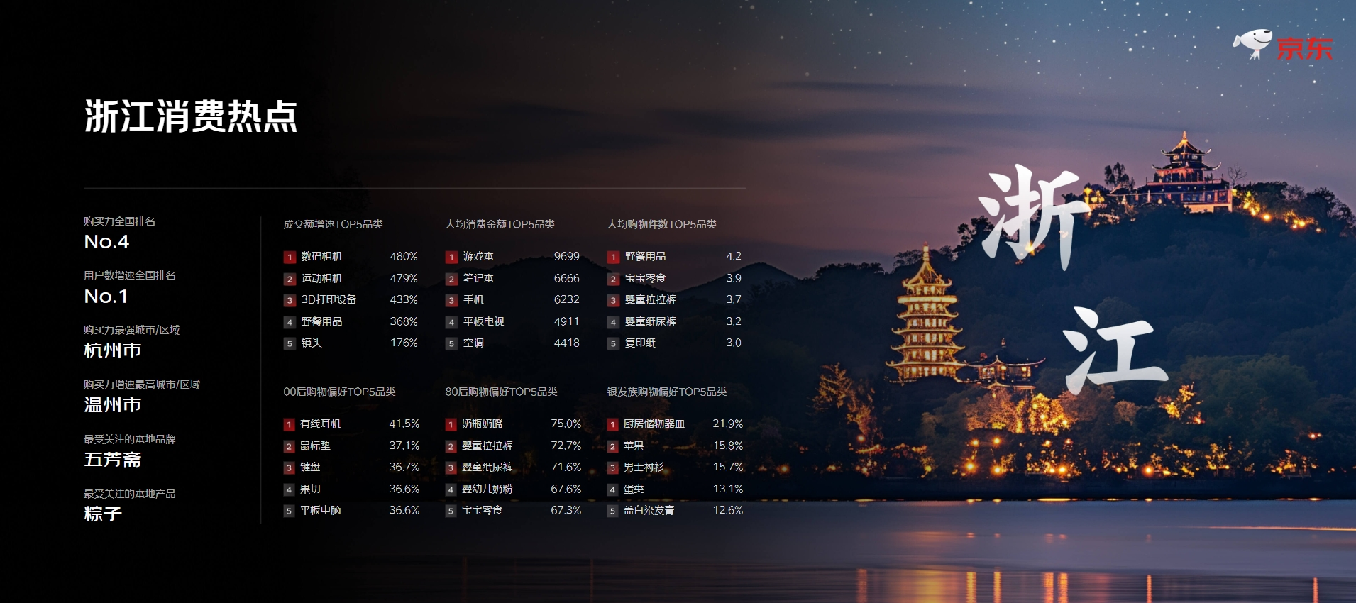 今年京東618,浙江省再次成為消費(fèi)版圖中不可或缺的中堅(jiān)力量之一!罢恪崩锛扔械滋N(yùn)、又不失先鋒性,期待浙江未來(lái)引領(lǐng)更多消費(fèi)風(fēng)潮。
