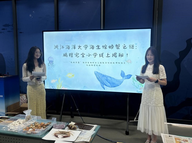 近日,浙江海洋大學(xué)“數(shù)繪深藍(lán)”海洋生物標(biāo)本三維數(shù)字化賦能博物館文化創(chuàng)新實(shí)踐團(tuán)以展館直播、展品展示等數(shù)字化方式,聯(lián)合湖南省婁底鵬程完全小學(xué)開展了一場別開生面的海洋知識科普實(shí)踐活動(dòng),為40余位山區(qū)孩子們打開了一扇探索海洋奧秘的窗口。本次活動(dòng)內(nèi)容豐富,海洋生物博物館整體講解、蟹類專題科普課堂、海洋生物標(biāo)本制作演示等環(huán)節(jié),進(jìn)一步厚植孩子們的海洋保護(hù)意識。
