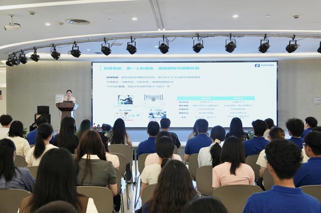 9月20日上午,一場(chǎng)由人形機(jī)器人領(lǐng)銜的“開學(xué)第一課”率先點(diǎn)燃活動(dòng)熱潮。來自寧波均普智能的人形機(jī)器人“賈維斯”驚艷亮相寧波市城市展覽館,為來甬大學(xué)生開啟了一場(chǎng)前沿科技的深度科普之旅;顒(dòng)中,“賈維斯”化身“科普大使”,現(xiàn)場(chǎng)展示舞蹈、智能問答等“才藝”。靈活的肢體動(dòng)作精準(zhǔn)復(fù)刻韻律節(jié)奏,面對(duì)學(xué)生提問時(shí)邏輯清晰的響應(yīng)更是展現(xiàn)出強(qiáng)大的AI實(shí)力,引得現(xiàn)場(chǎng)陣陣歡呼。更令人期待的互動(dòng)體驗(yàn)環(huán)節(jié)中,學(xué)生們親身體驗(yàn)通過語音指令控制機(jī)器人完成簡(jiǎn)單任務(wù),在“你問我答”的輕松氛圍里探索AI算法的奧秘。