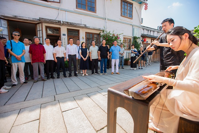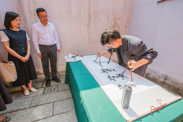 活動現(xiàn)場,悠揚古琴聲緩緩流淌,拉開文化盛宴的帷幕。隨后,中國當(dāng)代著名書法家葉根友現(xiàn)場揮毫潑墨,以筆墨丹青展現(xiàn)甌越書畫魅力,展露書畫藝術(shù)在基層沃土扎根生長之姿。