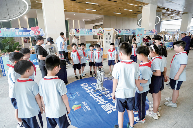 活動(dòng)外場(chǎng)設(shè)置四大科普展區(qū),分別為園博主題設(shè)計(jì)展、科普教育基地聯(lián)展、部門科普展示以及學(xué)生自制科學(xué)展板與園博模型。展覽內(nèi)容涵蓋人工智能、花卉與植物、野生動(dòng)物、海洋、地質(zhì)、食品安全、青春期健康等多個(gè)方面。孩子們?cè)跈C(jī)器人和機(jī)器狗展區(qū)興奮互動(dòng),在花卉展臺(tái)記錄知識(shí),在食品安全展位體驗(yàn)小游戲,現(xiàn)場(chǎng)氣氛熱烈,科普真正“活”了起來(lái)。