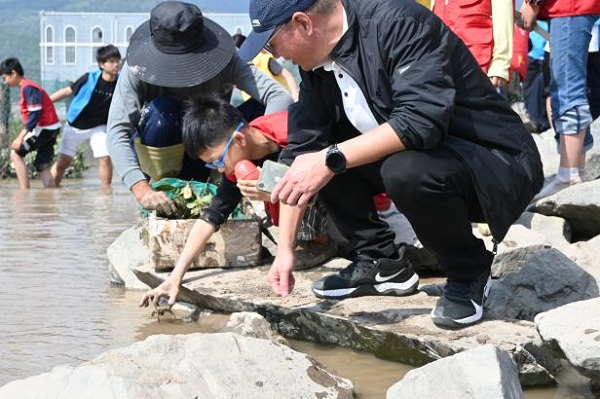 隨后,小學(xué)生們領(lǐng)取“青蟹習(xí)性卡片”及蟹苗,通過(guò)任務(wù)卡了解青蟹的生活習(xí)性后,有序地將它們放歸灘涂,并用手機(jī)記錄下這美好瞬間。