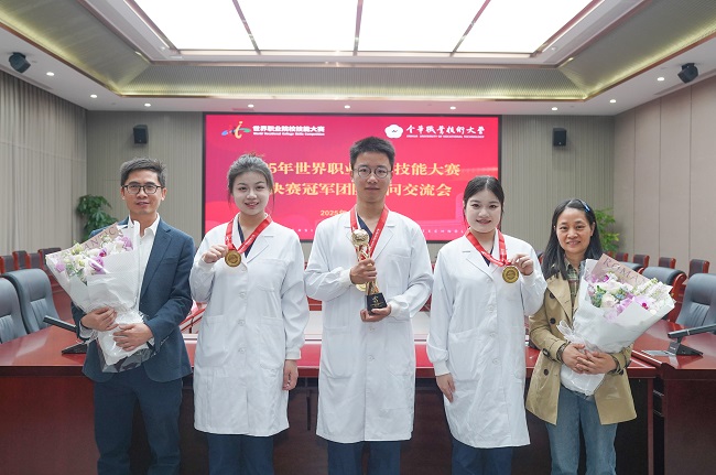 就在3天前的11月14日,在天津舉行的2025年世界職業(yè)院校技能大賽冠軍總決賽上,來(lái)自金華職業(yè)技術(shù)大學(xué)的湯學(xué)政、施怡吉、徐佳淇三人團(tuán)隊(duì),憑借《家門口的守護(hù):糖尿病并發(fā)癥的社區(qū)精準(zhǔn)防治》項(xiàng)目,從76個(gè)國(guó)家的8956支隊(duì)伍中脫穎而出,一舉奪魁。