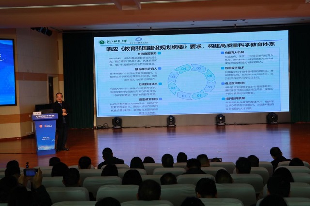 活動(dòng)緊密圍繞時(shí)代前沿,將人工智能技術(shù)與科學(xué)教育的深度融合作為核心議題。多位權(quán)威專家?guī)?lái)了高水平的專題講座。浙江師范大學(xué)副校長(zhǎng)李盛從宏觀戰(zhàn)略層面,深入闡釋了《教育強(qiáng)國(guó)指引下科技教育與人工智能融合的探索》;浙江省教研室副主任喻伯軍則聚焦實(shí)踐,提出了《建設(shè)科學(xué)教育實(shí)驗(yàn)區(qū)、校的建議》,為一線工作提供了清晰的方法論指導(dǎo);科大訊飛AI技術(shù)應(yīng)用研究院副院長(zhǎng)劉君分享了《人工智能技術(shù)最新進(jìn)展及在科學(xué)教育實(shí)踐案例》,生動(dòng)展現(xiàn)了AI技術(shù)重塑科學(xué)課堂的廣闊前景。