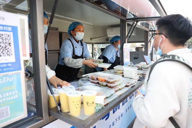 為方便考生用餐,學(xué)校在正門口、教學(xué)樓下等3處位置設(shè)置移動餐車、餐點,開放教授長廊、部分教室和餐廳作為用餐及午休區(qū),休息區(qū)內(nèi)環(huán)境安靜整潔,充足飲用水、常用藥品箱、考試應(yīng)急箱等物資一應(yīng)俱全,全力保障考生的休憩需求。從大連理工大學(xué)遠(yuǎn)道而來的考生陳韻鈺對餐車服務(wù)印象深刻,她說:“沒想到一出考場就能吃上香噴噴的飯菜,很方便,不用冒著寒風(fēng)找地方就餐,真心感覺被暖到了!