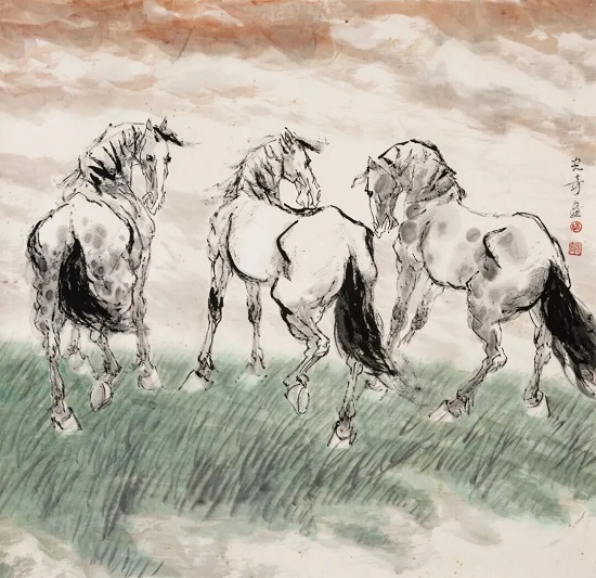 1978年下半年起,他與杰出畫家李山朝夕相處、亦師亦友,在藝術(shù)上不斷精進(jìn),李山赴美國前特地贈(zèng)畫鼓勵(lì),這段情誼成為他藝術(shù)道路上的珍貴養(yǎng)分。忘年之交張一弓曾拍著他的肩慨然道:“駿馬,強(qiáng)國之象征!它心懷忠義,積極向上。