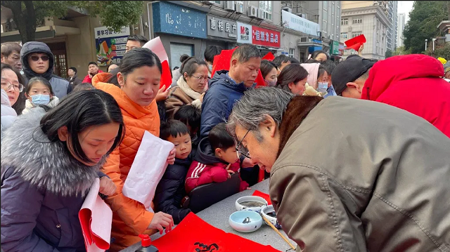 “每年兩個(gè)小時(shí)都寫不夠,書法家們上了年紀(jì),雖然手都凍僵了、腰也直不起來,但還是耐心地給到場(chǎng)的市民寫完為止,精神可嘉!被顒(dòng)主辦方表示,希望這些紅紅火火、喜慶吉祥的春聯(lián)能給大家在新年送個(gè)好兆頭,祈愿大家歲歲常歡愉,年年皆勝意。