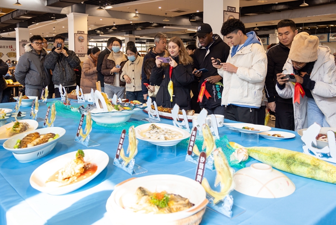 船運(yùn)學(xué)院的包玉翔同學(xué)興奮地表示:“沒(méi)想到學(xué)校的黃魚(yú)能做出這么多花樣!黑椒香煎的那道黃魚(yú)菜品,表皮酥脆,里面又特別嫩,和我媽媽做的家常味道完全不一樣,很驚喜!”?茖W(xué)院的林可瀚同學(xué)在品嘗后感慨:“終于也成了‘別人家的大學(xué)’!”來(lái)自俄羅斯的留學(xué)生麗娜更是表現(xiàn)興奮:“我第一次看到這么多種大黃魚(yú)的做法!每道菜都很有特色,中國(guó)的飲食文化太豐富了!